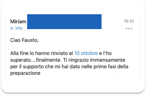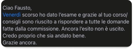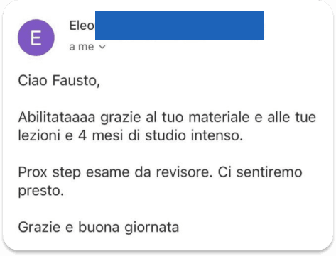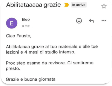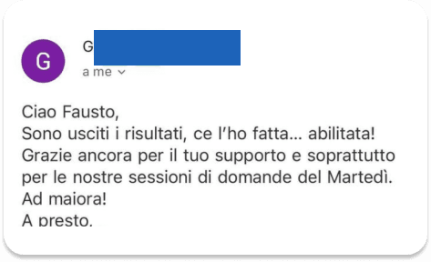 I nostri corsi si distinguono per l’approccio pratico, l’aggiornamento costante ai cambiamenti normativi e l’alto tasso di successo tra i partecipanti. Offriamo un accompagnamento costante con supporto personalizzato, confronto con altri studenti per motivarsi e migliorare insieme, e materiali essenziali senza eccessi inutili, così da concentrarti solo su ciò che serve davvero per superare l’esame con sicurezza.