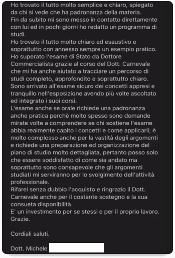 Scopri come possiamo aiutarti per le preparazione all’esame da Dottore Commercialista-Esperto Contabile e Revisore Legale dei Conti. Avrai a disposizione 15/30 minuti, sintonizzati in un posto tranquillo e con una buona connessione internet.