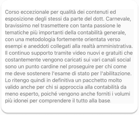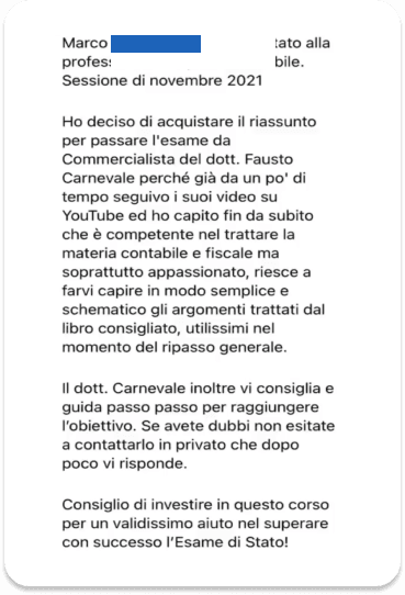 ✔️ È il creatore del corso numero uno per preparare l’esame da Dottore Commercialista, un corso unico nel settore dei corsi di contabilità e fiscalità. La sua missione è quella di formare migliaia di imprenditori e professionisti nel campo della contabilità.