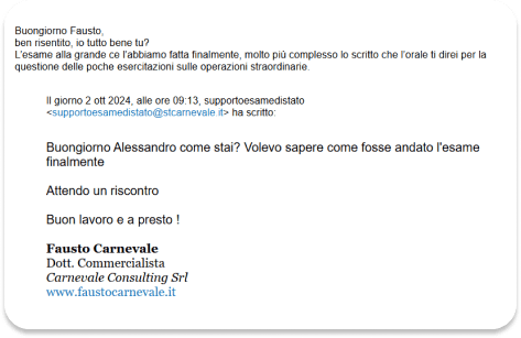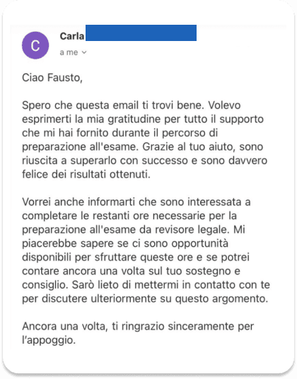 ✔️ Fausto Carnevale ha formato con successo oltre 200 studenti-aziende attraverso i suoi corsi, condividendo le sue conoscenze e competenze nel campo della contabilità e della fiscalità.